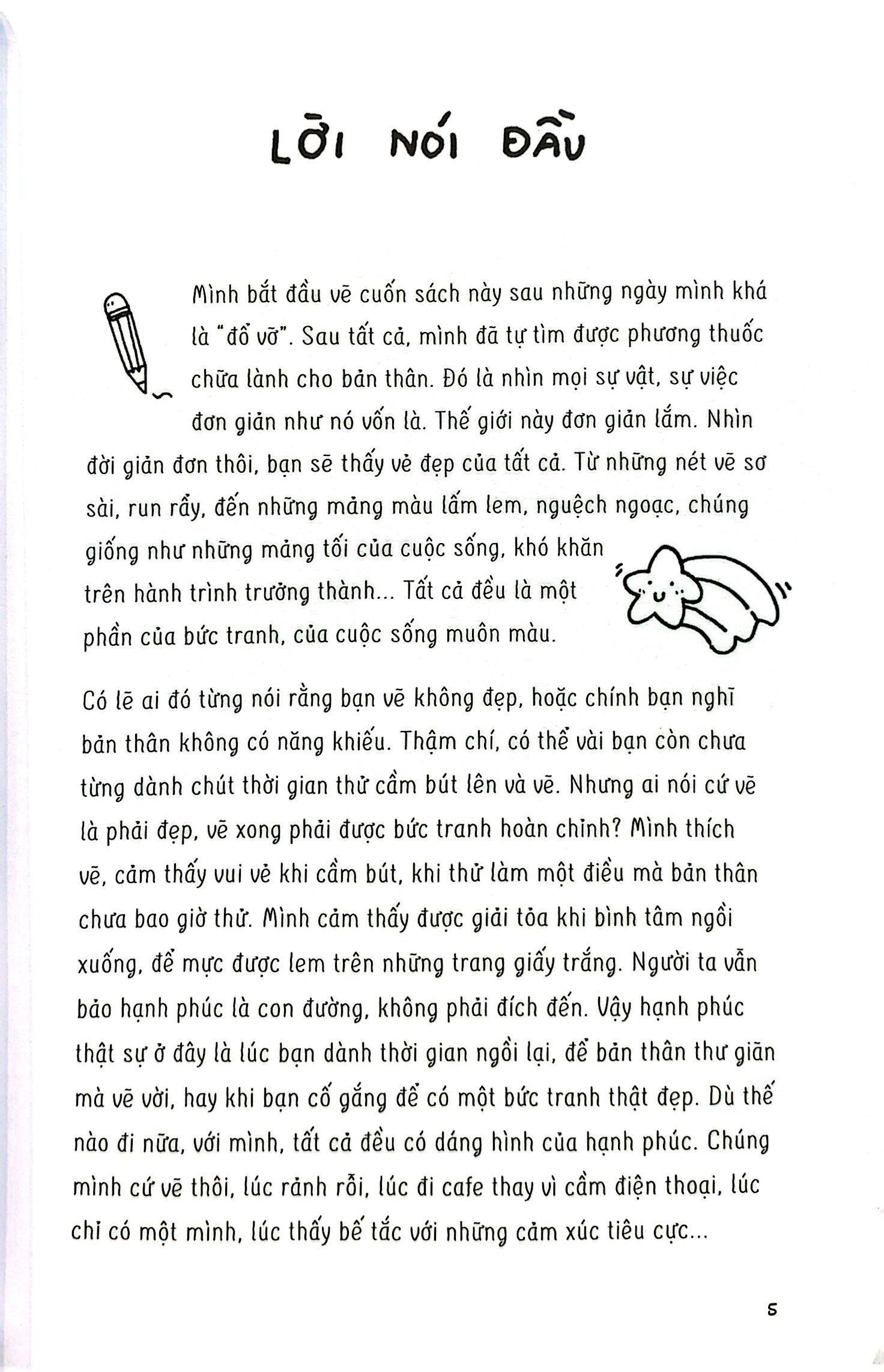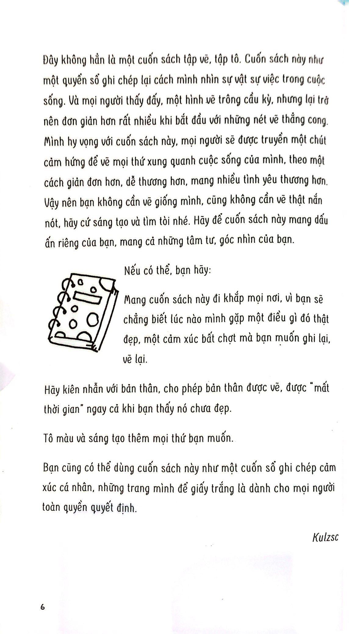 Đặc biệt hơn cả, “Yêu những ngày nắng Chẳng ghét những ngày mưa” còn là hành trình VẼ ĐỂ CHỮA LÀNH. Qua 168 trang sách, Kulzsc khéo léo dẫn bạn vào thế giới đầy màu sắc với đầy đủ cung bậc cảm xúc. Nơi bạn có thể thoải mái bật cười nhưng đồng thời cũng có thể thả lỏng để nỗi buồn trôi đi.
