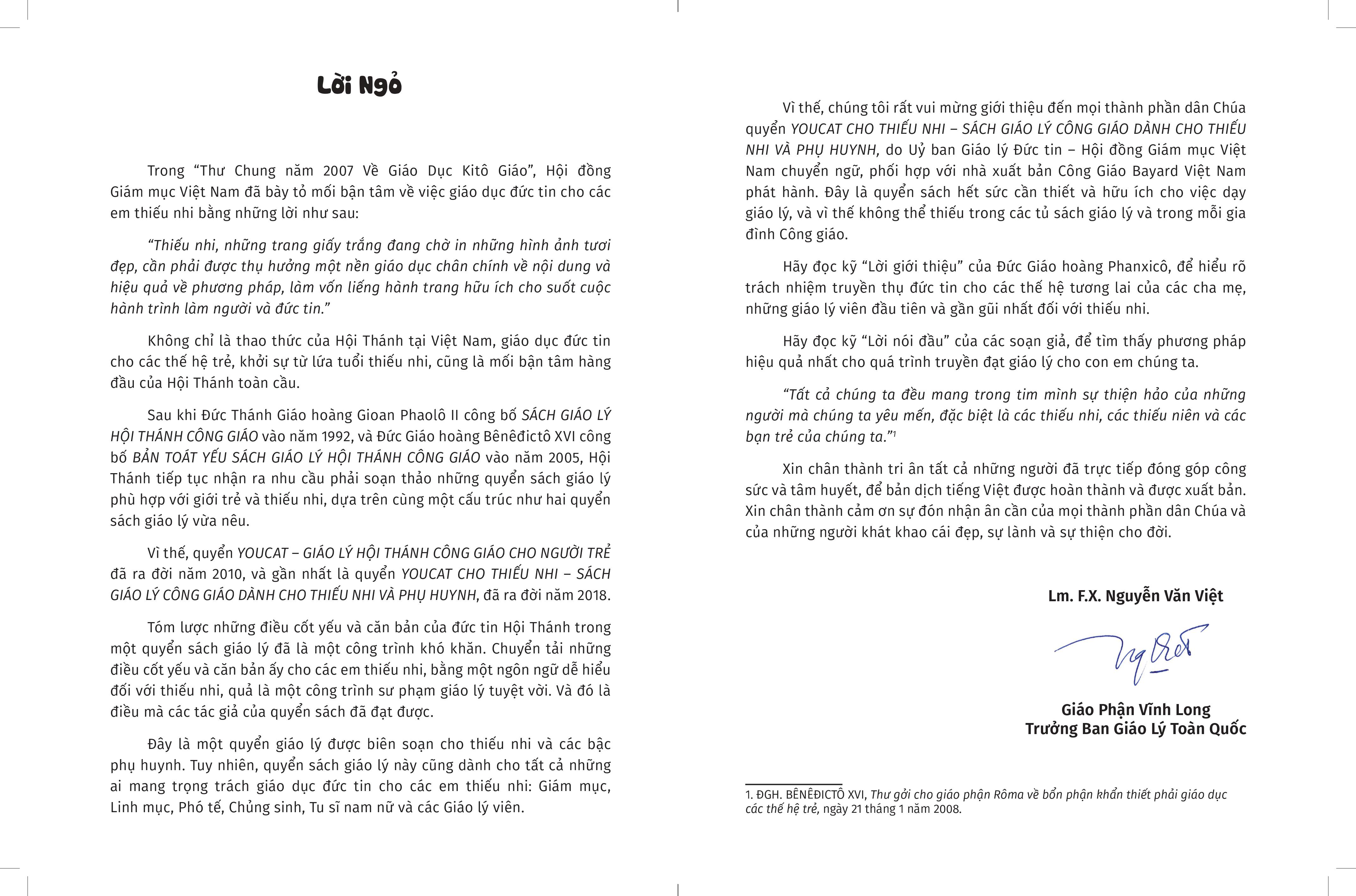 Lời Giới thiệu của ĐTC về YouCat (Giáo lý Công giáo cho Người Trẻ)